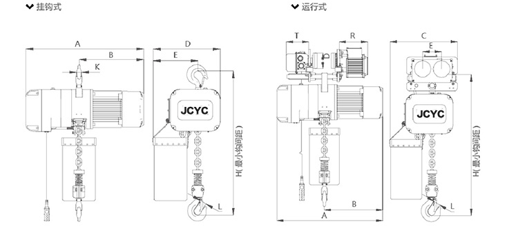 掛鉤式環(huán)鏈電動(dòng)葫蘆(0.25T-5T)尺寸參數(shù)